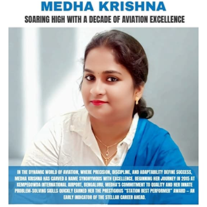 Over the past decade, Medha has transformed from a promising airport professional into a respected Aviation Trainer & Manager – Operations at Sky in Aviation. Her expertise spans airport operations, passenger handling, safety protocols, and team coordination. Known for her composure under pressure, she has trained over 1,500 students, many of whom now work with leading airlines and aviation service providers. Her training approach blends real-world experience with theoretical clarity, focusing equally on technical knowledge, professional grooming, and service excellence. Beyond aviation, Medha’s versatility shines through her entrepreneurial ventures. She played a key role in developing a WeChat-based application and holds a significant stake in Sky in Aviation, positioning herself as both an educator and a strategic business leader with a forward-looking vision. Her vision extends beyond skill-building — she aims to create sustainable platforms for training future aviation talent. Admired for her humility and dedication, Medha continues to inspire aspiring aviation professionals with her mantra of hard work, adaptability, and continuous learning. For her, the sky is more than a limit — it’s her daily workplace, and her remarkable journey proves that excellence is a choice, made every single day.